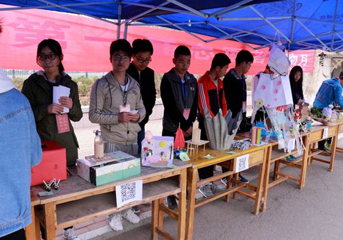 3月23日下午,由校区、学院团委主办,校区、学院大学生志愿者联合会承办的“旧物改造”手工制作大赛的作品在林荫道展出。