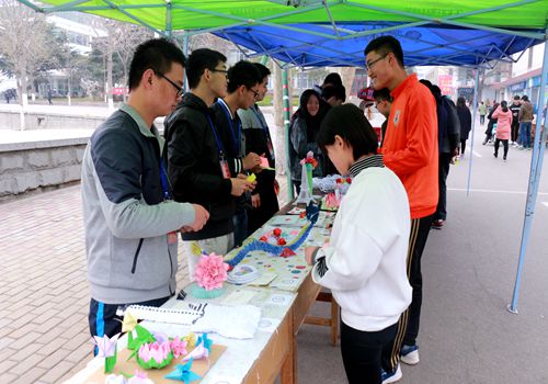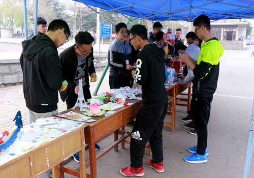 3月23日,校区、学院团委在东校园小篮球场旁林荫道举办创意纸工艺品大赛。