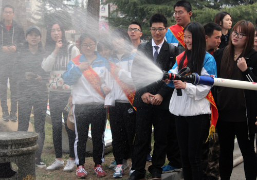 本次活动以“慰问消防官兵,宣传消防知识”为主题。活动伊始,消防支队队长带领同学们参观消防车辆、消防用具等,为同学们讲解破拆器材的使用方法,让同学们对消防队有更多的了解。随后消防支队队长开设消防课堂,分五个章节为大学生们讲授火灾的相关知识,并重点讲解常见消防器材的使用方法,强调“消防不可扮独”。消防课堂结束后,消防官兵为大学生展示消防用具的操作步骤,让同学们亲自操作,军民互动。活动结束后,同学们为消防队员带来歌曲、舞蹈、军体拳等节目,赢得现场掌声连连。(文:赵妍妍 贾玉霞 图:赵林 王研 编辑:时银娃)