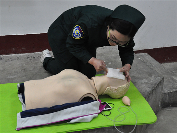讲座以PPT教学和实践操作相结合的方式展开,从理论和操作两方面对心肺复苏相关知识及技术进行讲解。首先,王靖结合自己的工作实践经验详细讲解如何判断呼吸心跳骤停、人工呼吸及注意事项等内容。六名护士利用电子模拟人轮流演示心肺复苏的过程。随后,现场同学上台在护士指导下操作演练。最后,刘相明讲到:“此次培训让同学们掌握了基本的急救方法和技能,增强了同学们自救互救意识,提升了他们在遇到突发情况时的自我救护和救助他人的技能,有利于将意外事故带来的伤害降到最低限度。”(文:朱晓彤 葛庆盼 图:曲开明 朱芳敏 编辑:杨帆)