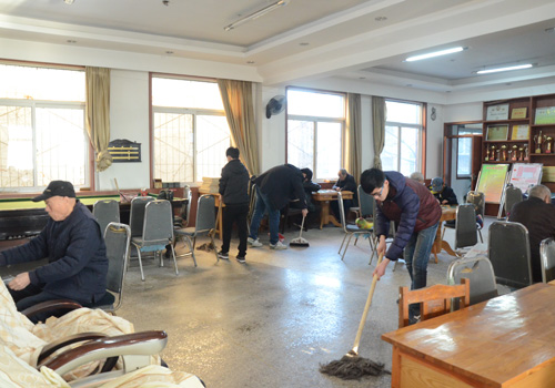 毕业生党员领取卫生工具后,迅速展开大扫除活动。在不打扰退休老师正常休息活动的情况下,毕业生党员有序的擦桌子、拖地、打扫楼梯,最终顺利完成对大厅各个角落的打扫。(文:何传真 图:孙新宇 编辑:张腾飞)