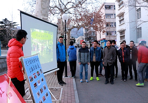 下午5点整,志愿者们在林荫道两侧展出了我校志愿者在泰山景区、红门路口等地志愿服务的照片,并向过往师生进行现场讲解。为了增加互动效果,展示区还专门设立了有奖答题区,对志愿服务感兴趣的过往行人可以抽取题目并现场作答,回答正确者将获得志愿者们准备的小礼品。