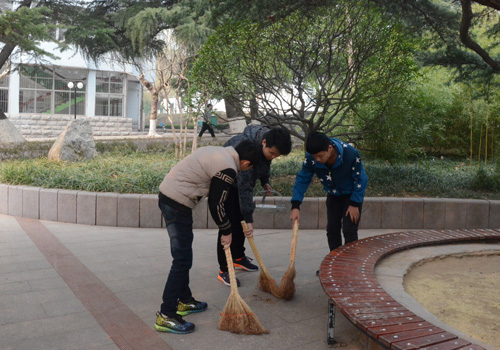 3月5日,是学雷锋纪念日,机电学子自发组织打扫小花园卫生。