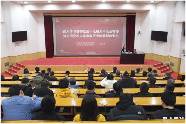 李洪洲为资源学院师生作“深入学习贯彻党的十九届六中全会精神”宣讲报告