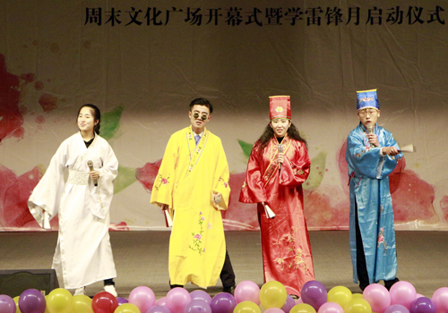 “学雷锋走志愿路,奏歌舞绽艺术花”。3月4日,校区、学院团委主办,校区、学院学生会承办的周末文化广场开幕式暨学雷锋月启动仪式于在西校园礼堂举办。