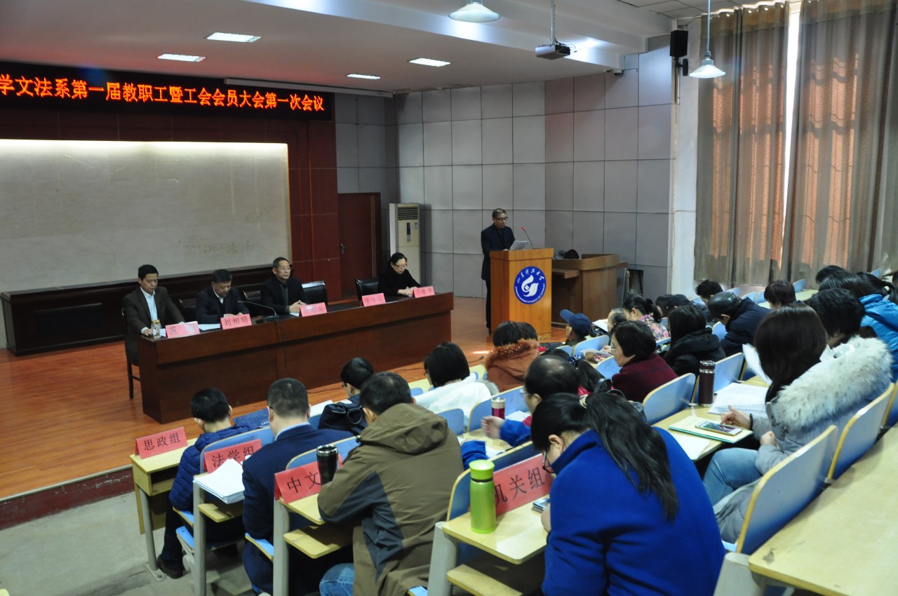 3月2日,文法系在模拟法庭召开第一届教职工暨工会会员大会第一次会议,大会由文法系党总支副书记兼副主任刘相明主持。