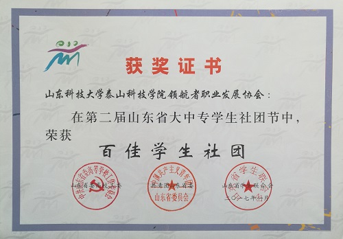 近日,山东省高校工委、团省委、省学联下发《关于公布第二届山东省大中专学生社团节获奖名单的通知》鲁青联[2017]4号,学院领航者职业发展协会被评为“百佳学生社团”。(文:王新亮)