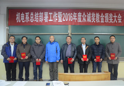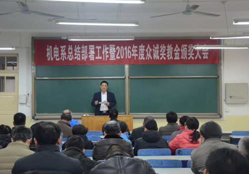 2月21日,机电系在3#301召开总结部署工作暨2016年度众诚奖教金颁奖大会。会议由系党总支书记张建中主持,系全体教职工参加。
