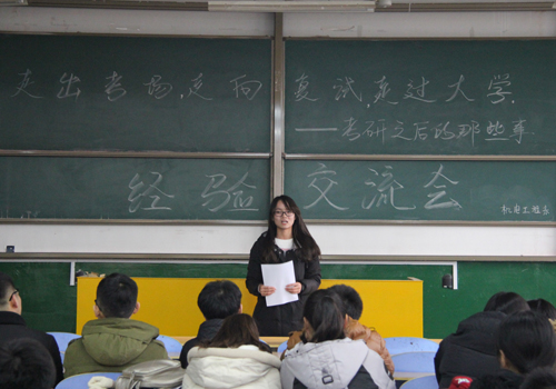12月26日,机电系特邀请在读研究生我系第九届学生会主席李量、副主席刘南南,在2号楼401召开“走出考场、走向复试、走过大学”考研经验交流会。