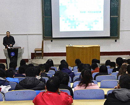 12月5日,在信息系团总支书记蒲蓬勃的召集下,网络13-2郝孝帅于1A107多媒体教室为15级信息系同学分享保研经验和技巧。