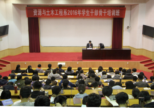 12月6日,资土系2016年学生干部骨干培训班在4号楼报告厅继续举行,系党总支副书记兼系副主任朱景星围绕“学生干部的能力与修养”为学员们作报告。