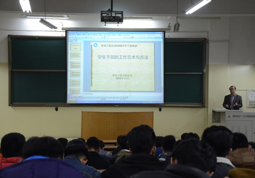 近期,机电系学生干部培训会在5号楼206举行。机电系团总支书记谢清勇为全体学生干部做“学生干部的工作艺术与方法”专题培训。