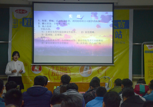 据悉,大赛评分标准包括实战月售箱数(占50%)、PPT(占35%)和微信投票(占15%)三部分。一个月娃哈哈销售中,各团队创新销售方案,广开销路,11支参赛队伍进入决赛。决赛中,各团队代表依次上台演示团队制作的PPT,介绍团队的销售对象、方式等。梦之队的组合情侣、兄弟合伙人的学霸套餐等创意销售方式获得评委好评。(文:毕建伟 刘艳萍 图:张昊 赵文港 编辑:时银娃)