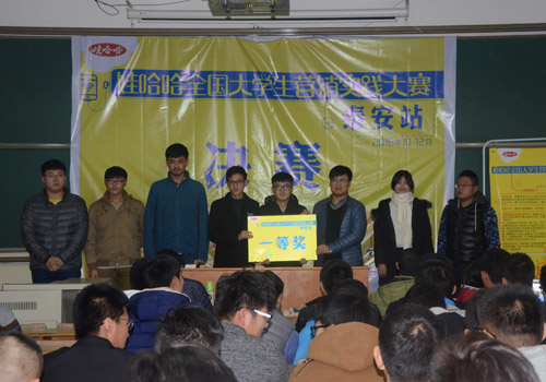 11月25日,机电系娃哈哈营销大赛决赛在5#202举行,泰安莱芜区域娃哈哈总经理狄崇田和机电系学生会部分主席、部长任评委。由机电系学生会外联部王鋆等六人组成的v587队获得一等奖及最佳策划奖。