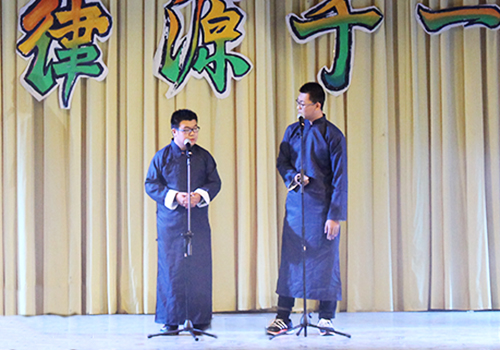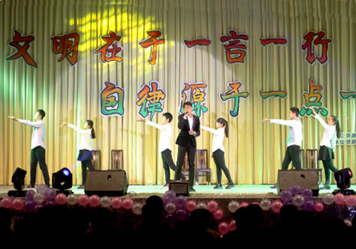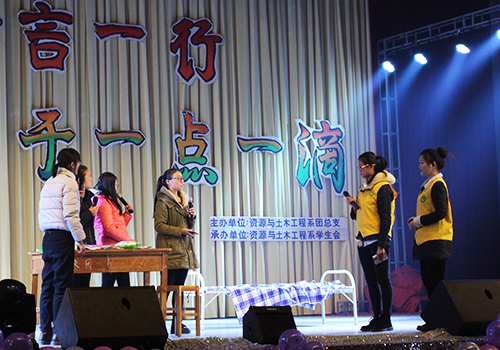 11月25日晚,资土系“泰山我敢当”大学生自律·和谐系列活动闭幕式晚会在东校园礼堂落幕。资土系党总支副书记兼副主任朱景星、系团总支书记程家国、部分系团总支辅导员出席,大一全体新生参加。