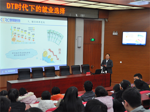 文法系团总支书记郭涛林与招聘单位领导进行了座谈,详细了解往届毕业生在企业的表现情况。会谈结束后,王玉升做了题为“DT时代下的就业选择”的报告,文法系“益群学生干部成长营”全体成员和西校园毕业生代表共150余人参加了报告会。同学们纷纷递交个人简历,填写求职意向表,有10余名同学与用人单位达成初步意向。