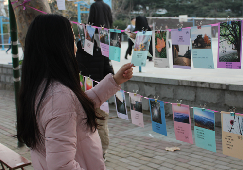 大赛报名投稿阶段,资土学子踊跃提交自己的作品参赛,经初审环节后,入围参赛的作品挂在展区,进行大众评选。下课后,过路同学们纷纷驻足欣赏,温儒尔雅的三行诗、感人动情的照片与“word”故事,同学们围绕作品展开激烈讨论,并为自己喜欢的作品投上宝贵的一票。