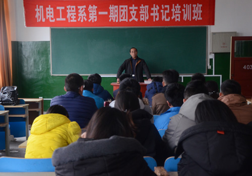 11月22日,机电系系团总支书记谢清勇为全体团支部书记作“牢记使命,适应新形势,全力以赴做好团支部工作”专题培训。