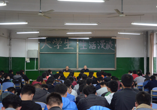 杜培林指出大学生自我能力培养的重要性,强调大学生应制定明确的目标,并为之坚持不懈的奋斗。他在为人处世、兴趣爱好培养、专业知识学习和时间分配等方面对同学们提出建议,希望同学们不断充实自己,全面提高自身素养。