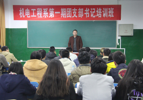 11月17日,机电系第一期团支部书记培训班开班仪式在2号楼403举行。系党总支副书记殷永贵为各班团支书作“如何做一名称职的团支部书记”的开班报告。