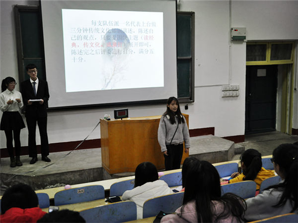 11月16日下午,由文法系团总支主办、学生会承办的中国传统文化知识竞赛决赛在1A107举行。