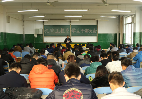 11月14日,机电系专门召开全系学生干部大会,由系团总支书记谢清勇带领全系学生干部学习了《关于加强机电系班委会和团支部委员会建设的实施意见》。