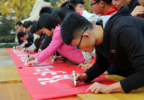 信息系在11月12日在礼堂前举行“纪念孙中山诞辰150周年”签字活动。信息系党总支副书记裴国栋和新生辅导员高姣姣老师、学生党员、入党积极分子、广大学生出席活动。