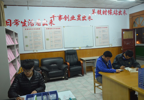近日,机电工程系在学生宿舍、教学楼等场所建立和完善了7个特色党小组党员活动室。在活动室布置上,机电系严格按照党员活动室标准化建设要求,以党旗配文字的形式打造各个活动室,配置了党员承诺践诺书展板、党员入党誓词以及“三个出来”党员旗帜工程小组划分图,并增订党报党刊及党的基础理论知识等书籍,为党员及时了解学习时事政治提供了便利。