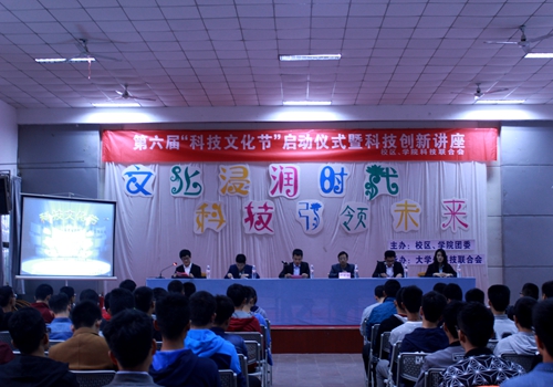 10月26日,校区、学院举办的第六届“科技文化节”启动仪式分别在东、西校园开幕。校区、学院团委副书记朱庆豪、科技创新部部长尹发利作科技创新专题报告。