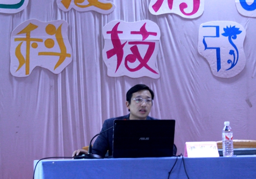 朱庆豪简单阐述了举办本次科技文化节最主要的目的,并就大学生如何进行创新思维培养这一问题,从大学生创新思维的概述、突破定势思维、变换思维角度和创新性思维方法四个方面重点展开讲解。尹发利为同学们解析了我校科技文化及学生科技创新方面的整体概括,向同学们解析了科技创新的重要性及学习方法并勉励同学们要认清过去,把握现在,思考未来,做一名学习型实用人才。