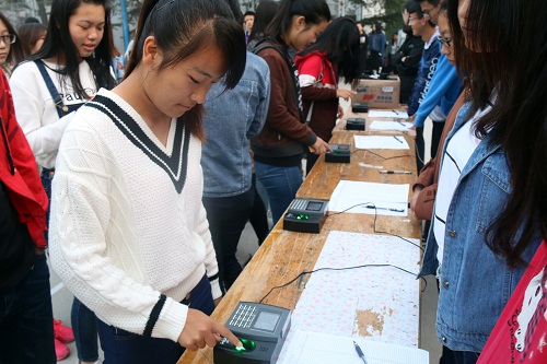 自上学期开始,经管系率先在2015级学生早签工作中试用考勤机,取得良好效果。考勤机代替人工签到,减少同学们等待时间和因签到引起的各类纠纷问题,有效避免替签、漏签等情况。同时,自动生成各类报表,便于早签情况的统计分析,减轻学生会同学的工作量。本学期,经管系新增五台考勤机,投入到2016级学生早签工作。(文:周广文 图:周群 卢宇晴 编辑:周潇)