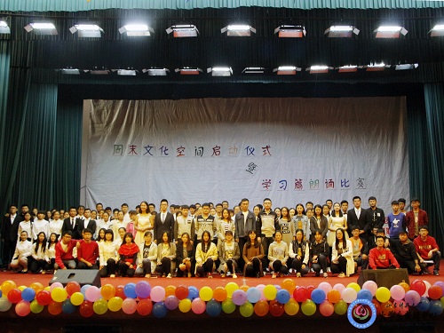10月22日,由校区、学院团委主办,校区、学院学生会大学生社团联合会承办的周末文化空间启动仪式暨学习篇朗诵比赛在西校园礼堂举办。
