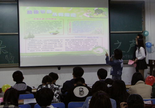 10月22日,由校区、学院团委主办,校区、学院大学生志愿者联合会绿洲节能服务部承办的环保之声活动在西校区1C103教室举办