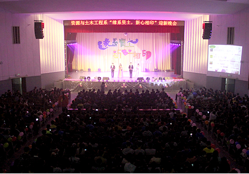 10月23日晚,由资土系团总支主办、系学生会承办的“缘系资土·新心相印”迎新晚会在大礼堂隆重举行。系党总支书记戴东宝、系主任贾宏俊、系党总支副书记兼副主任朱景星、系团总支书记程家国及全体辅导员老师观看了演出,系全体2016级新生参加。