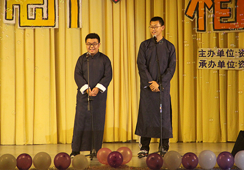 晚会伊始,洒艳老师用一首开场舞曲《致青春》拉开了整场晚会的序幕。随后,《You are pitiful》用动感的音乐、激情的旋律,迅速点燃现场气氛。深情婉转的歌曲《燕归巢》、忧伤动人的独唱《beautiful love》、真情流露的萨克斯舞曲《我心永恒》以及回味青年时光的《老男孩》,各具特色,现场观众喝彩不断。韵律悠远的舞蹈《大汉云歌》、性感动人的舞蹈B-Box《千年等一回》、帅气十足、活力四射的《曳步舞》、时尚青春的街舞《darling》分别用四种不同的舞风使得现场尖叫不断。富有个性的相声《找地名》、小品《母亲》、《大话西游》笑点连篇,令人捧腹。最后,助理辅导员们的诗朗诵歌曲《明天会更好》将晚会带入高潮,同学们用手机打开手电筒照向舞台,双手挥动,为各位助理辅导员呐喊助威,场面十分热烈。晚会的互动环节同样精彩不断,“微信墙”吸引了大批墙友,其中留言贺电不断,搞笑又感人。据了解,本场晚会的许多节目是由新生参演,不仅增强了节目的互动性,增加了观众的兴趣,同时也丰富了晚会的迎新主题意义。