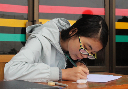 礼堂前人来人往,同学们现场作画,优秀的漫画功底,娴熟的勾画手法,或抒情婉转或激情澎湃,展现学校新生独特的绘画风采。据悉,今天一共有14个编辑和漫画作者加入《东岳潮》的大家庭。(文:李宵 图:高波 陈涵 杜晓慧 编辑:杨莹)