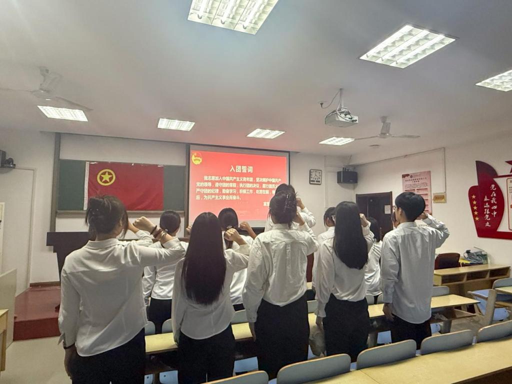仪式在庄严的国歌声中拉开帷幕。新发展团员们精神饱满,面向鲜艳的团旗,在领誓人的带领下庄严宣誓,铿锵有力的誓言在现场回荡,展现了新时代青年坚定不移跟党走,为共产主义事业奋斗终身的坚定信念。
