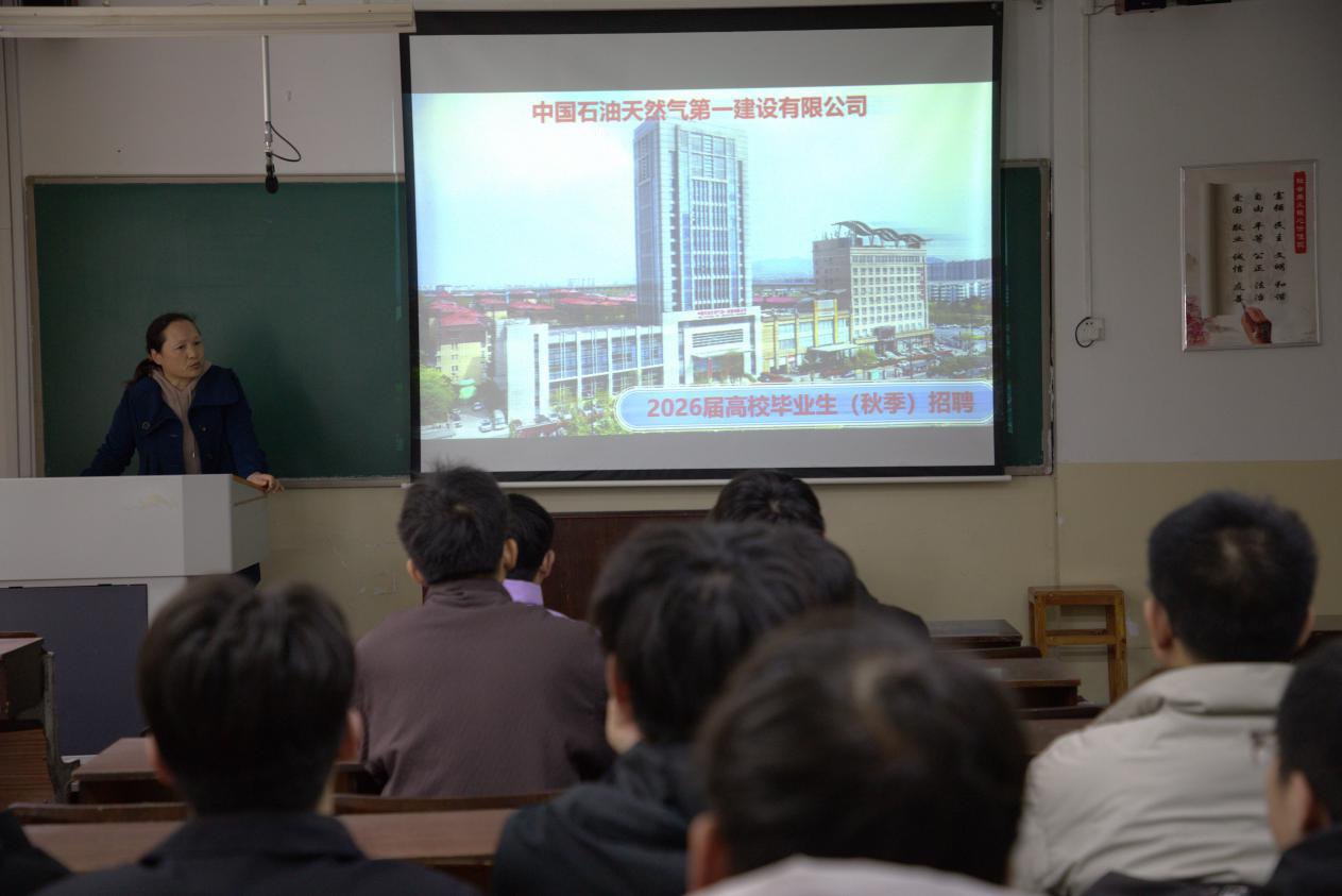 为增强学生就业竞争力,提高学生就业质量,11月10日,智能装备学院于东校园3#205举办了2025年中国石油天然气第一建设有限公司招聘宣讲会,2026届部分毕业生参加。