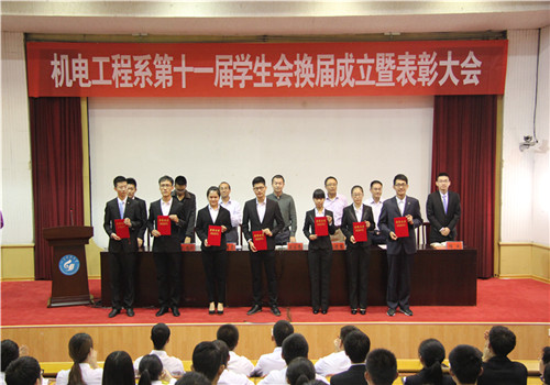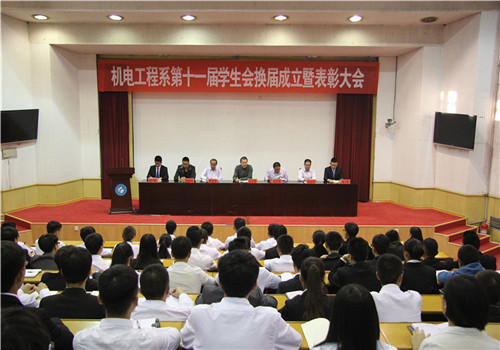 9月29日,机电系在四号楼报告厅召开第十一届学生会换届成立暨表彰大会。系党总支副书记殷永贵出席大会。系全体辅导员、系学生会第十、十一届全体成员及各班班委参加了大会。