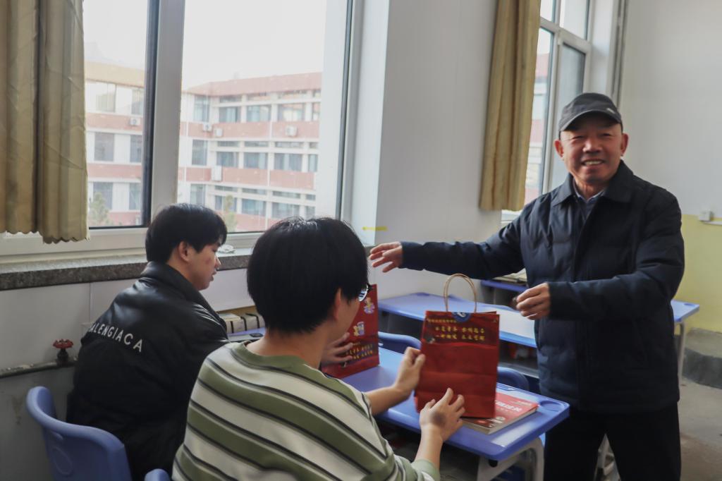 12月2日清晨,学院领导、辅导员及学生会工作人员走进自习室,将满载祝福的福袋亲手送至每位考研学子手中。老师们轻声询问同学们的复习进度与身心状态,叮嘱大家张弛有度,注意防寒保暖,保持良好心态。一位收到绘有“金榜题名”福袋的同学感动地说:“在紧张备考之际收到学院的关怀,让我真切感受到家一般的温暖,这份鼓励将成为我前行的重要动力。”