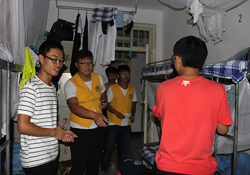 晚10:45左右,晚检部新干事在部长的带领下,对宿舍进行突击检查。在开始工作之前,部长们对工作流程进行了周密的部署,并着重强调了工作中的文明礼仪等注意事项。检查过程中,新干事严格按照晚检检查条例规定,做到进出有礼貌,查处有章程。新人第一次晚检工作顺利完成,没有发现任何违纪行为。(文/图:侯立超 赵金成 编辑:张腾飞)