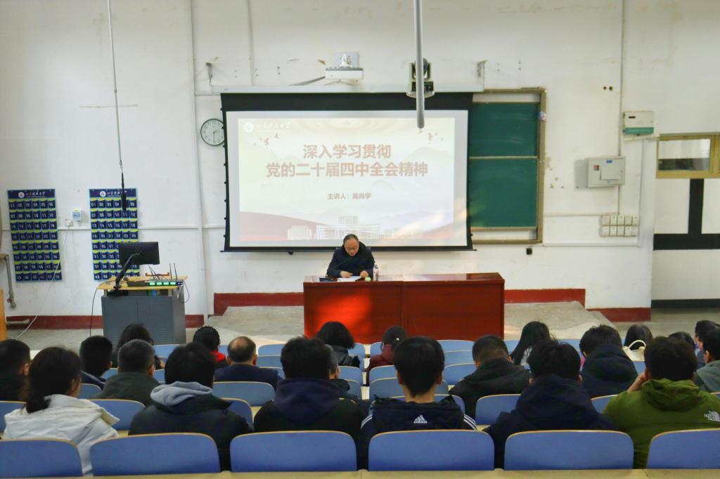 为深入学习贯彻党的二十届四中全会精神,推动全会精神进校园、进课堂,1月6日,资源学院党委书记高尚宇在1A107教室为学院教职工和工程管理22-4班学生宣讲党的二十届四中全会精神。