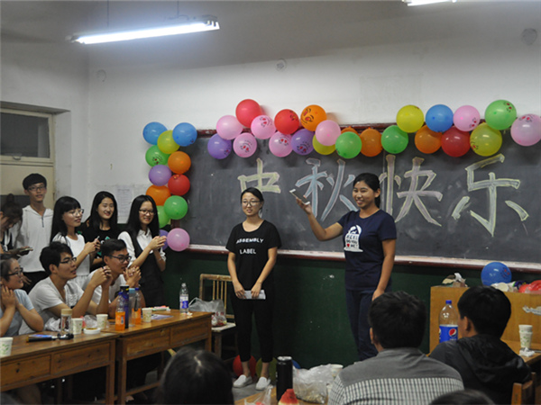 9月15日晚,文法系各新生班级在学生兼职辅导员的组织下举办中秋节联欢晚会。