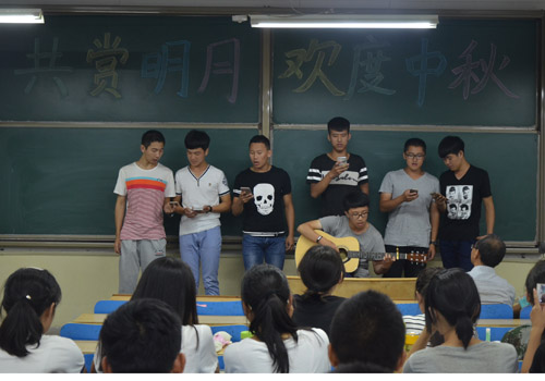 9月15日晚,机电系各新生班级在班内举办中秋节茶话会。