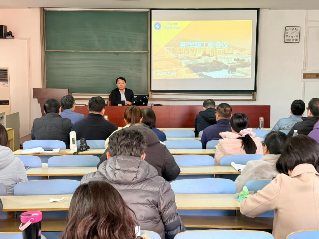 3月10日下午,财经学院2026年新学期全体教职工大会在学院210会议室召开。会议学习传达学校新学期干部大会精神,全面总结学院2025年工作成效,系统部署2026年重点任务。学院党委书记朱景星主持会议,学院全体教职工参加会议。