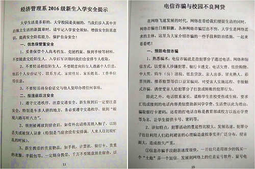 新生开学,刚到一个陌生的环境,难免会迷茫、不知所措,对此,经管系团总支专门印制《经济管理系2016级新生入学手册》供新生学习,内容包含致新生和家长的一封信、安全提示、防范电信诈骗与校园网贷、日常管理制度等九个板块。(文:周广文 图:刘安宁 编辑:杨莹)