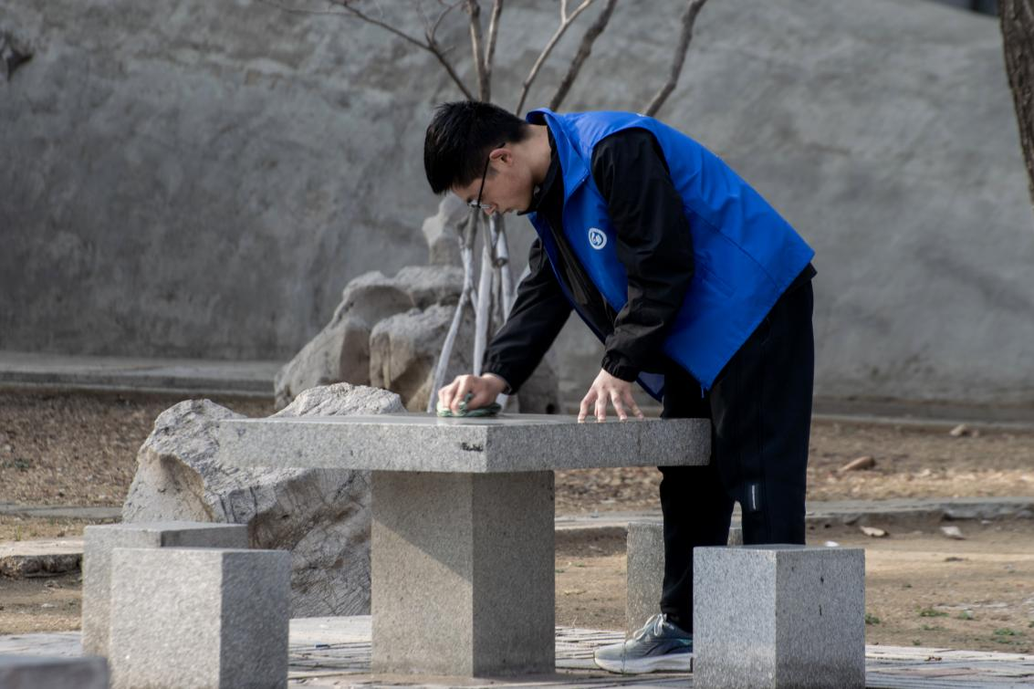 志愿者们秉持“奉献、友爱、互助、进步” 的志愿精神,以小组为单位分工协作、高效行动。大家手持扫帚、夹子、抹布等清洁工具,对雷锋园道路、绿化带、休闲区域开展全方位清扫,捡拾各类垃圾、清理卫生死角,仔细擦拭雷锋园内公共设施,同时修剪杂乱枝叶、拔除杂草,用心维护绿植生长环境。志愿者们配合默契、干劲十足,全程不留一处清洁盲区,雷锋园整体环境面貌焕然一新。
