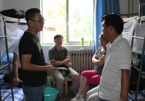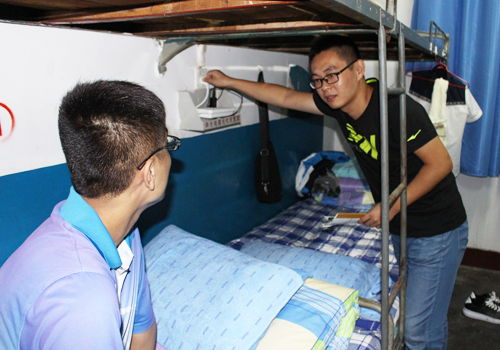 在宿舍与家长亲切交流,家长放心我们才安心。