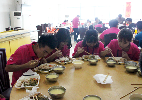 午饭是他们唯一的休息时间,但是为了尽早轮换还坚守在迎新点的同伴吃午饭,大家都开启“食不言”模式,节约时间。
