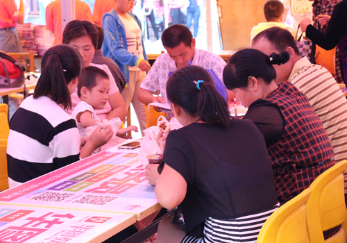 在工作者的带领下,家长们坐在休息区休整疲惫的身体。